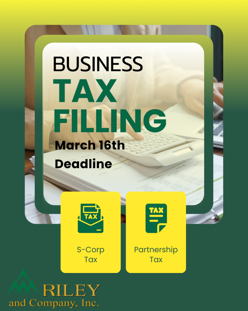 S-Corp & Partnership deadline is March 16, if you haven’t gotten your info to us, give us a call so we can get an extension filed.