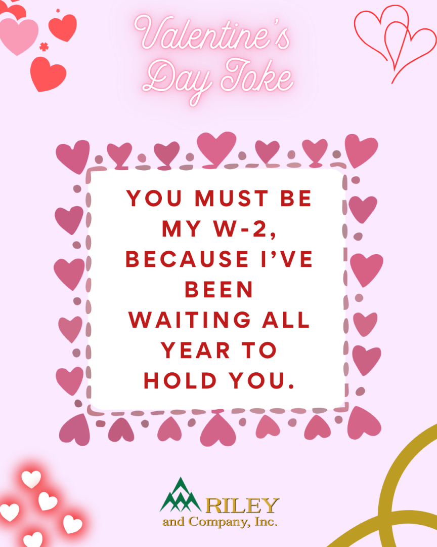 It’s Friday the 13th, but there is nothing scary about it because tomorrow is Valentine’s Day. To lighten the mood, we wanted to hit you with a lovely Valentine’s tax joke!